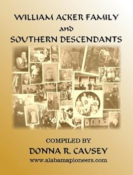 Save yourself hours of research on early Southern Ackers. This book includes all my research in a compilation of genealogy records of William Acker, Sr. (1710 Germany -1793 NJ, USA) His GEDCOM can be found on http://www.alabamapioneers.com Many transcribed deeds, church minutes, cemetery records, endnotes, anecdotal stories of descendants have been included. His GEDCOM on http://www.alabamapioneers.com is based on these sources: Some descendant Surnames of William Acker's descendants include: ALEXANDER, BAKER, BELCHER, BELL, BOOTHE, BOOZER, BRAZELTON, BROWN, BRUTON, BRYSON, BUNN, BURNS, CAFFEE, CALDWELL, CANTERBURY, CARDEN, CARLTON, CLEMENTS, COBB, COCHRAN, CONWAY, COOLEY, COX, CUNNINGHAM, DAVIS, DIRDOFF, ECKER, ELLIS, EUBANKS, FAULKNER, FISHER, GADDIS, GARRIS, GARRISON, GIBSON, GRACE, GUIN, HACKNEY, HALBERT, HALL, HAMMOND, HARRISON, HAYS, HERRING, HILL, HOLLY, HUBBARD, HUTTO, KEATON, KENNEDY, KI EFFER, LANGFORD, LAWRENCE, LINDLEY, MADDOX, MARSH, MARTIN, MATTISON, MAYFIELD, McBRIDE, McCAIN, McCANTS, McCLINTON, McDAVID, McDILL, McGEE, MILES, MILLER, MILLS, MITCHELL, MOORE,MORGAN, MOSELY, MOSES, NICHOLS, NORRIS, OGLESBY, O'REAR, PARKER, PETTITT PICKENS, POGUE, PRATT, PRUITT, REAR, REED, SHARP, SHUMATE, SIMS, SMITH, SMITHSON, SPRINGS, STEVENSON, STRICKLAND, SUTHERLAND, TAFT, TAYLOR,THOMAS, THOMASON, THOMPSON, TOWNSEND, VANDIVER,VICE, VINSON, VOWELL, WALKER, WALTON, WELLBORN, WEAVER, WEST, WHITE, WIDEMAN, WILLIAMS, WOODS